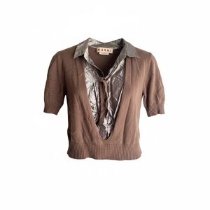 Marni Brown Cashmere Cardigan with metallic frontal insert IT Sz.40 US Small