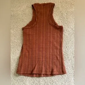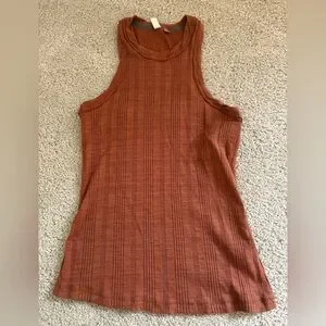Effortlessly chic and perfect for layering! This rust-colored tank features a ribbed texture and a flattering high neckline. Soft and lightweight material makes it great for everyday wear, pairing with jeans, skirts, or shorts for an easy, stylish look.
