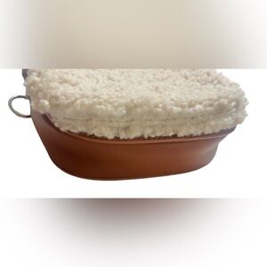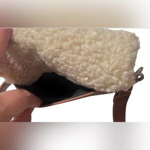 Stylish shoulder bag with a cozy cream texture. Features a durable brown strap. Perfect for everyday use.