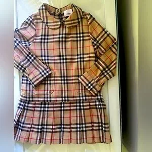 Authentic-Burberry dress with classic plaid design. Features beige and black tones. Perfect for casual outings. Low offers will get declined.