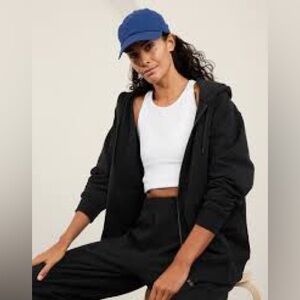 NEW Athleta Forever Fleece Oversized Full Zip Black Hoodie Size ST