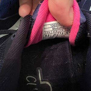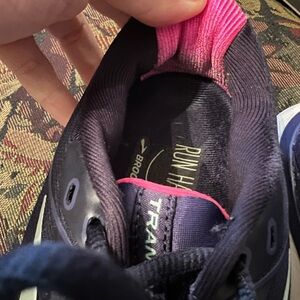 Sleek navy design with breathable mesh. Ideal for running and workouts. Durable and stylish. These are in excellent used condition- minor wear on the inside ;shown in photos) no tears or rips. Minimal scuffing if at all- also shown in photos. No stains. Original laces- soles intact. No cracks or fading in coloring- see photos