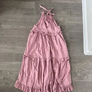 Charming dusty rose pink Anita maxi dress with ruffled tiers. Sleeveless design with a relaxed fit. Perfect for casual wear.