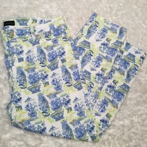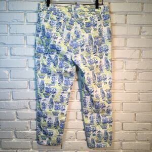 Talbots READ hemmed Slim Ankle Jeans Watercolor Vases Print 14 inseam 25