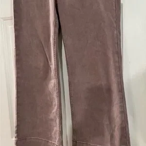 Stylish wide-leg pants in a rich mauve color. Features cute front pockets and a button closure.