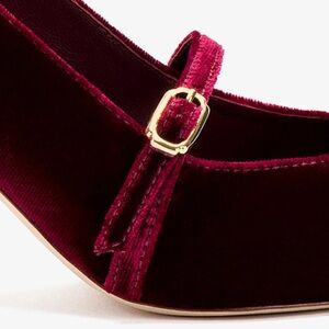 Elegant velvet heels with slingback design. Deep cranberry wine hue.