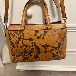 Mellow World Salome Embossed Floral Crossbody Handbag Vegan Leather Cognac