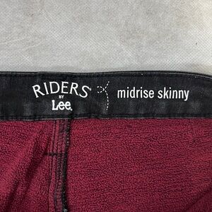 Warm red fleece lined Riders by Lee black jeans. Perfect for winter or colder days. Midrise skinny. Size 8 medium. No defects. New condition and not worn. No tags. Non-smoking home. Front pockets, and back pockets.