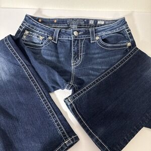 Miss Me 30 Mid Rise Boot Cut MV5182815D Fleur De Lis Embroidered Pocket W1