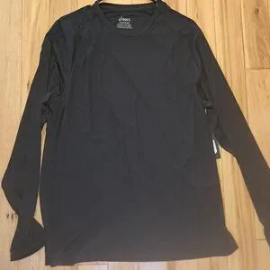 This is a performance athletic crew shirt from ASICS, black in color, Men’s XL, brand new with tags. It’s built for comfort and moisture control, making it suitable for running, gym sessions, or everyday casual wear