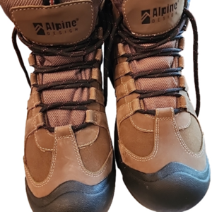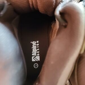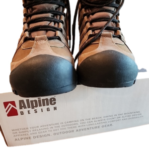 Waterproof Hiking Boots, Men's size 9.5, by Alpine Design, NIB. These never worn hikers go slightly above the ankle and are made of leather and man made upper, and synthetic black soles with solid traction action.