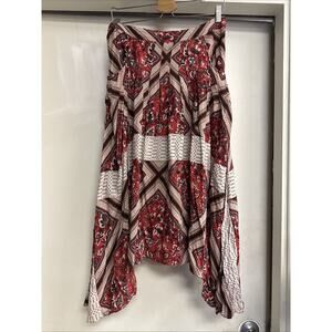 Free People Skirt Size 8 Paradise Printed High-Low Maxi BoHo Pimento Combo Red