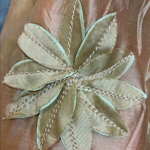 Kay Unger Gold Cap Sleeve Fit And Flare Silk Dress With Floral Hem Detail Size 8