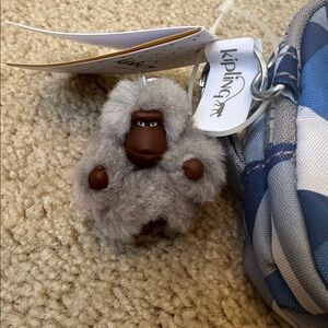 Chic Kipling pouch with geometric pattern. Includes signature keychain. Use as a pencil case or makeup bag. Was a gift that was never used. Please ask questions and make an offer!