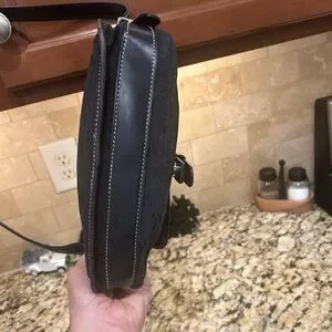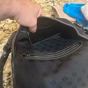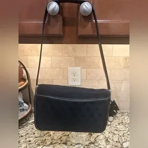 Dooney & Bourke Vintage Black Canvas Logo/Leather Trim Shoulder Purse