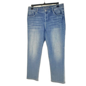 Chico's denim pants in a light blue shade. Comfortable and versatile for everyday wear.