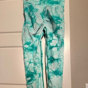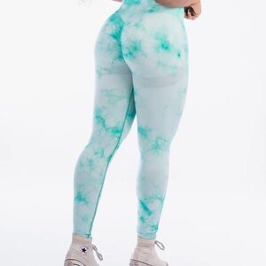 Elevate your workout wardrobe with these stylish aqua tie-dye leggings. Perfect for yoga or casual wear, they offer comfort and a trendy look.