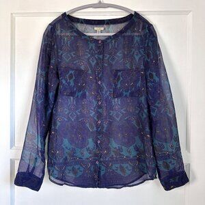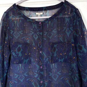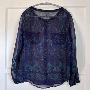 Ecote Urban Outfitters Blue Purple Paisley L/S Top Sheer, Size M
