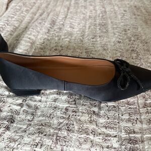Chic black satin flats with a stylish bow. Perfect for versatile wear.