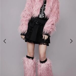 This set includes a jacket in size XS that has been worn once and in excellent condition. The leg warmers are labeled “one size” and are brand new with the tags still on. The jacket is somewhat oversized in my personal opinion. I have another very similar style jacket from this brand in a small, and the small actually fits a little bit smaller on me than the jacket in this listing. Dolls Kill sizing is kind of all over the place. The leg warmers are long on me, which I do not mind at all because I think they look even better as thigh highs. I am happy to provide measurements of each item upon request.
