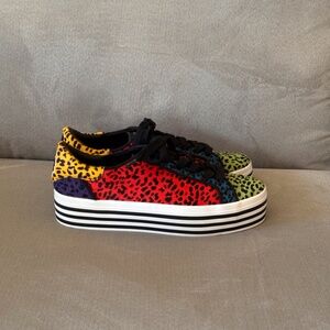 Alice + Olivia Falyn Platform Animal Print Calf Fur Colored Rainbow Sneakers