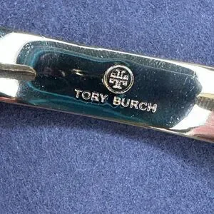 Make a bold statement with this new with tags Tory Burch red enamel cuff bangle bracelet. Featuring glossy red enamel and raised gold-tone double-T logo accents, this open-back cuff design is effortlessly chic and easy to slip on. A timeless piece with modern polish — ideal for gifting or elevating your own collection.
