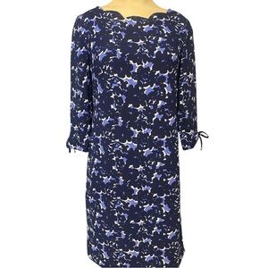 Talbots Navy and White Floral Long Sleeve Dress