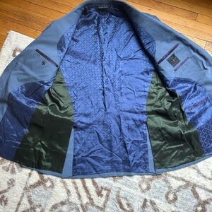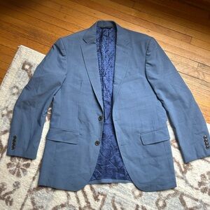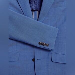 JAYING will lift your suited style with its brighter blue hue, featuring a heathered woven texture that elevates without overtaking. This wool suit jacket is cut in a sharp slim fit with a classic single breasted design.