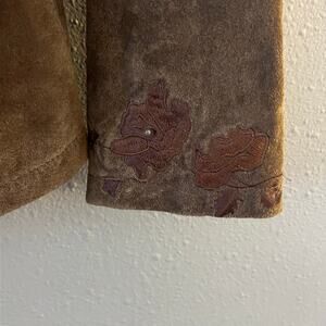 Montanaco Genuine Leather Suede Jacket Brown Floral Embroidered Button Front Womens Large Western Boho