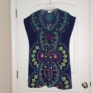 Maeve Anthropologie 100% Silk Medallion Print Mini Dress Women's Sz Med