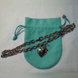 100% Authentic Tiffany & Co. Heart Lock Necklace Thick 16" Chain 18k Gold and Sterling Silver