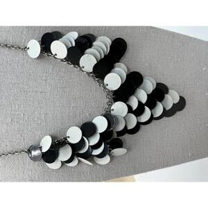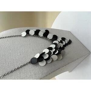Silver-tone chain with alternating black and white discs creating a layered effect.
