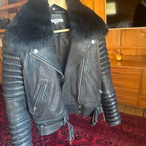 The Arrivals Rainier Black Leather Moto Jacket – Small (Fur Collar Included)