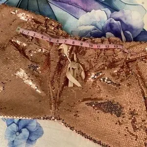 Dazzling sequin pants in a shimmering gold. Perfect for adding sparkle to any outfit. It’s the holidays, so sparkle plenty! I wore these for a picture; please note that I see sequins missing (I think). For the price, who cares!