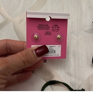 This is a brand new Kate spade set. Earring with matching necklace. The spade is in the mother of pearl color. Both in gold hardware. Not real gold. Very cute set. Comes with the two dust bags.