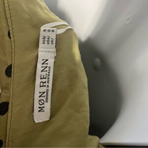 Mon Renn Roselyn Midi Dress Olive Black Polka Dots Size Small NWT