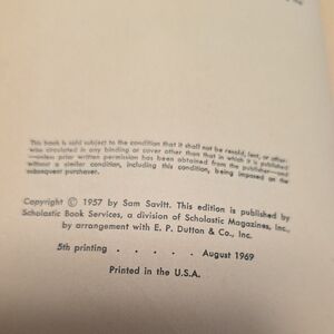 This is a vintage 1969 Scholastic paperback book titled Midnight, Champion Bucking Horse by Sam Savitt.