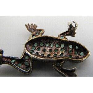Vintage 925 Sterling Silver Emerald Frog Brooch Pin Thailand