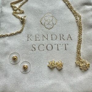 Kendra Scott Cailin Gold Adjustable Pendant Necklace and Earrings Set Crystal CZ