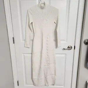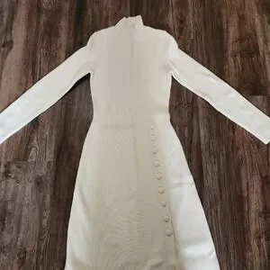 This is an elegant knit dress made from natural fibers. It is perfect for occasions when you need to dress up in winter while still keeping warm.