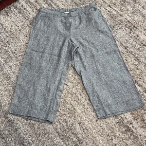 J. Jill Love Linen wide leg crop side zip black gray linen pants sz 2X