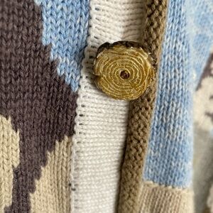 Beautiful sweater and excellent condition. Pit to pit measures 29 inches, overall length measures 32 inches.
