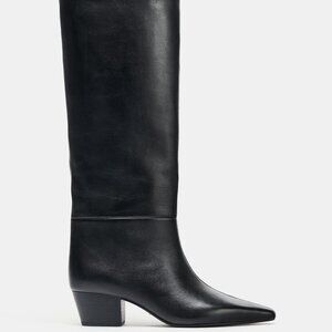 Zara Heeled Leather Boots, Black Size 8