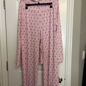 Charming pink pajama set with cute gingerbread pattern. Ideal for cozy nights.