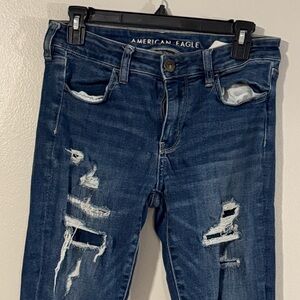 American Eagle Outfitters Women's Ripped Dark Blue Skinny Jeans