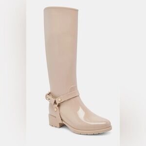 Step out in style with these elegant beige knee-high boots. Perfect for any occasion, they offer both comfort and sophistication.