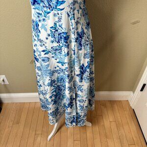 SHEIN Blue & White Floral Toile Midi Sundress Dress Size Small