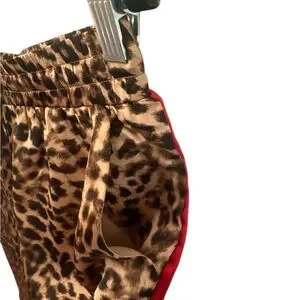 Things Between Wide Leg Pants Leopard Size Large Black Brown Red Stripe Flowy