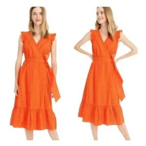 J Crew all over eyelet midi wrap dress resort orange 12 NWT Retail $138