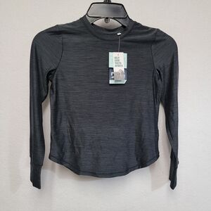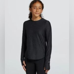 New With Tags DSG Dicks Sporting Goods Girls 365 Long Sleeve Tee In Black Size Small (8-9). Pullover, crew neckline, cuff thumbholes, long sleeve, curved hem. 88% polyester 12% spandex. Comfortable and stylish black long sleeve tee. Ideal for everyday wear.